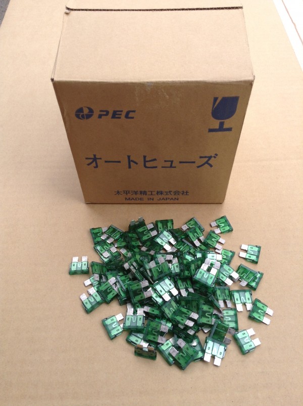 太平洋精工の純正オートヒューズ、ミニヒューズ、低背ヒューズ、スローブローヒューズ各種取り扱い。在庫あるものもあります。